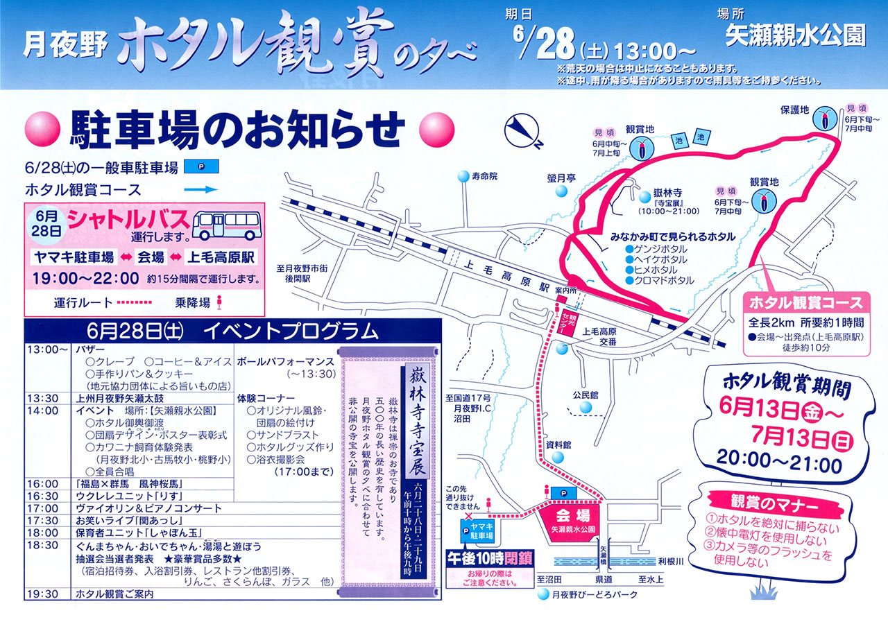 6月28日(土)矢瀬親水公園にて【月夜野ホタル観賞の夕べ】が開催されました。